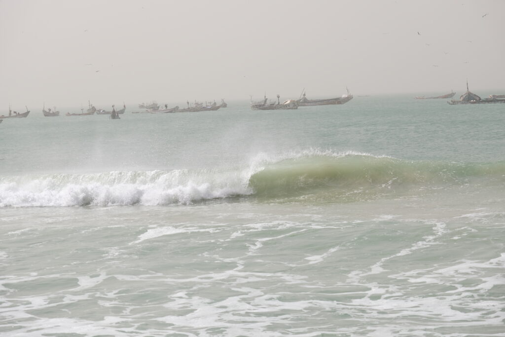 Nouadhibou Mauritánia második legnagyobb városa, kb. 120–150 ezer lakossal, a Ras Nouadhibou-félsziget északi végén; hangulatát a nagy halászkikötő, a vasércet szállító vasútvonal végállomása és a városra jellemző, szélfútta, egyszerű utcák határozzák meg. Mi egy nagyon hosszadalmas és fárasztó határátkelés után végül sötétben érkeztünk, így csak a forgalmat láttuk a városból. A szenegáli negyedben aludtunk egy kis vendégházban, ahol matracok voltak a földre terítve. Itt még nem tudtuk, hogy ez luxusnak fog számítani Mauritániai utunk során, mert vagy a kocsiban vadkempingeztünk, vagy sátrakban aludtunk a sivatagban, ahol 5 fok alá is lehűlt a hőmérséklet. Nouadibou egy nagy kikötő város, a legtöbben a halpiacra szoktak ellátogatni, nekünk ez idő szűkében, na meg azért mert éppen hatalmas szélvohar volt, kimaradt.