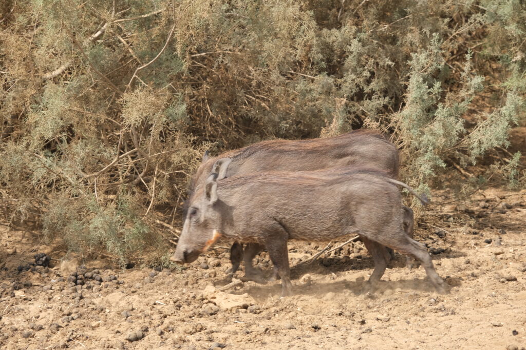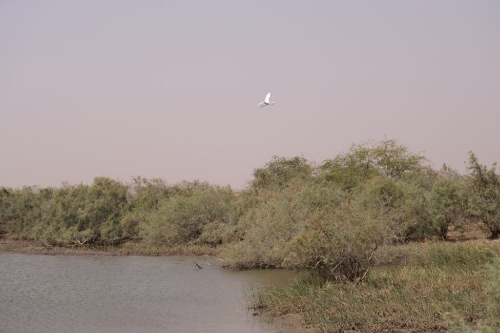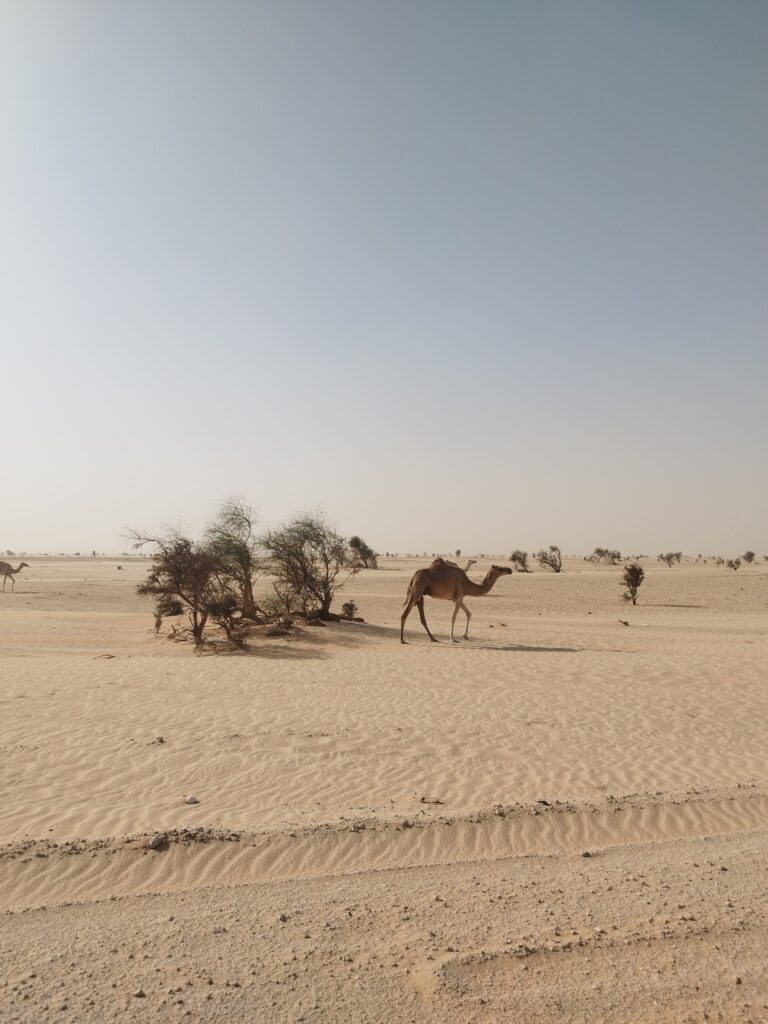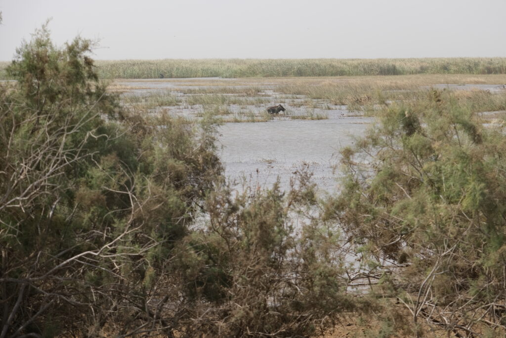 A Diawling Nemzeti Park Mauritánia délnyugati részén, a Szenegál folyó deltájában fekszik, és az ország egyik legfontosabb vizes élőhelye. A park lagúnákkal, mocsarakkal és mangrovékkal tarkított terület, amely kulcsszerepet játszik a vonuló madarak védelmében. Flamingók, pelikánok és számos vízimadárfaj él itt, miközben a park a helyi halász- és pásztorközösségek megélhetését is támogatja. A Diawling jó ellenpontja Mauritánia sivatagi arcának, és jól mutatja az ország természeti sokszínűségét. Nagyon élveztük az átkelést a Nemzeti Park területén a szenegáli határ felé (kb 2000 Ft/fő a belépő). Rengeteg madarat láttunk: flamingókat, pelikánokat, szürke és fehér gémeket, valamint sok más fajt, amelyeket nem ismertünk. A madarakon kívül főként tevékkel, tehenekkel és rengeteg varacskos disznóval találkoztunk.