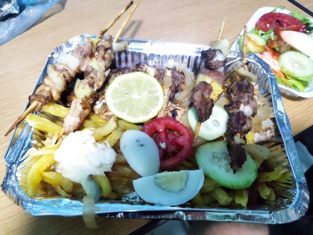 Mauritánia konyhája egyszerű, de laktató, erősen épít a húsra, a rizsre és a gabonafélékre. Az egyik legjellemzőbb étel a thieboudienne helyi változata, rizses-halas vagy húsos egytálétel, sokszor zöldségekkel. A tevetej és tevehús is elterjedt. Egyszer ebédeltünk egy útszéli, faszénen grillező árusnál, húsnyársas szendvicset ettünk, amelynek érdekes, inkább májra hasonlító állaga volt, ezért megkérdeztük a helyieket, hogy mit eszünk, és kiderült, hogy tevehúst. A mindennapok fontos része a teaivás: a mentás zöld teát hagyományosan három körben szolgálják fel, ami nemcsak ital, hanem közösségi rituálé is. Jelentős szenegáli eredetű közösség él, különösen a déli területeken és a Szenegál folyó mentén. Az ő konyhájuk általában fűszeresebb és változatosabb, gyakrabban használnak csilit, hagymát, paradicsomot és erőteljesebb szószokat, mint a hagyományos mauritán ételekben. MMivel mi szeretjük a fűszeres ételt, így ezeket az éttermeket kerestük. Mauritániában bár nagyon finom a mentatea, a kávékultúra nem jellemző, azonban a nagyobb váárosokban lehet café touba-t, egy szenegáli eredetű, erősen fűszerezett kávéitalt kapni, amelyet guineai borssal és gyakran szegfűszeggel ízesítenek, így csípős–aromás íze teljesen eltér a klasszikus kávétól.