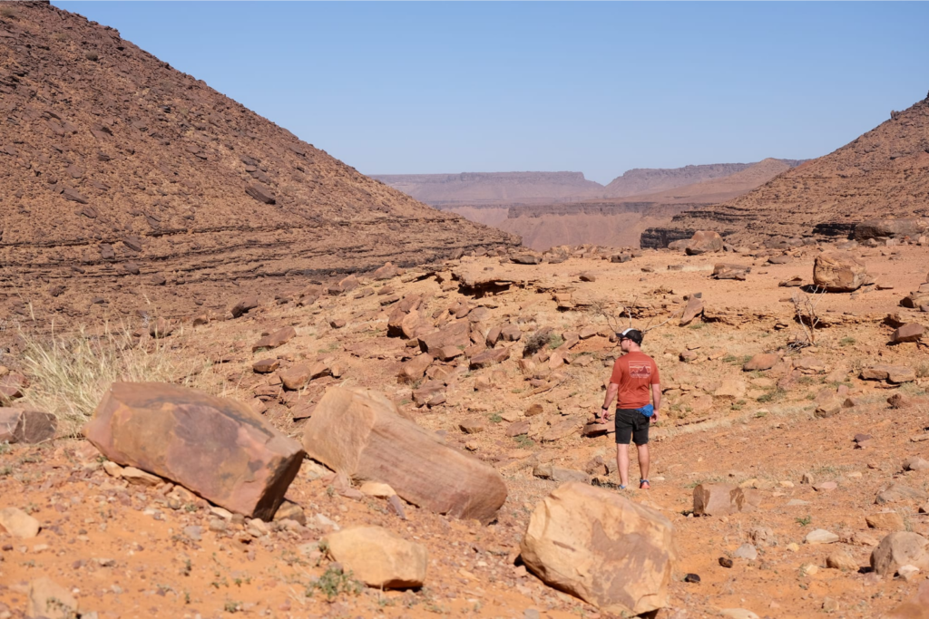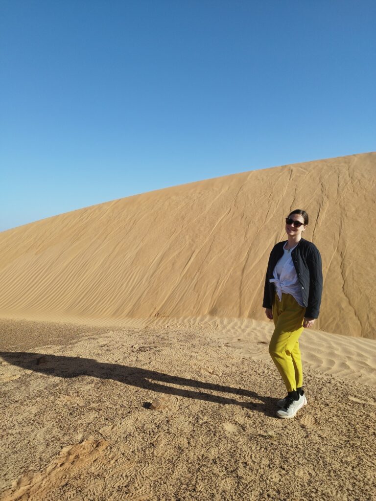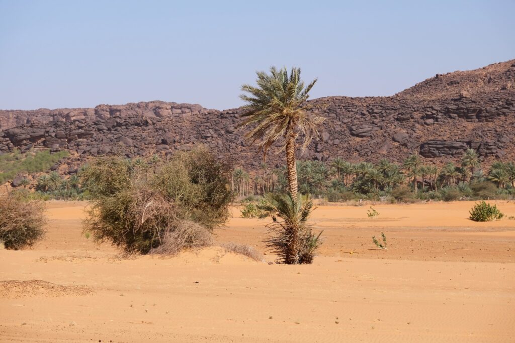 Terjit a Szahara déli peremén fekvő oázisváros, amely a régió egyik legbájosabb kis települése. A város környékét pálmaligetek és apró, homokos dűnék övezik, így a látvány nagyon festői. Mi a fővárosból érkeztünk, pár száz kilométeren keresztül inkább unalmas sivatagi síkságon haladtunk keresztül, amikor egyszer csak a távolban hegyeket pillantottunk meg. A hegyek előtt óriási dűnék terültek el, ahogy közeledtünk az oázishoz. Az oázis bejárata egy hatalmas sziklahasadék volt, amin keresztül beértünk a völgybe, ahol teljesen elállt a lélegzetünk. Sziklás hegyek, gyönyörű dűnék és végtelen pálmafák fogadtak minket. Mivel kezdett sötétedni, kerestünk egy sátortábort, ahol eltölthetjük az éjszakát, hogy másnap felfedezzük az oázist. A szállásunk valószínűleg az egyik legszebb környezetben volt, ahol valaha jártunk, este pedig finom fűszeres zöldségragut ettünk kuszkusszal. Másnap besétáltunk az oázisba, ahol még több pálmafa és rengeteg zöldes-kékes víz fogadott minket. Az oázis körül ki volt jelölve egy kis ösvény, így túráztunk kicsit a folyó völgyében, átkeltünk a dűnéken és köves dombokon.