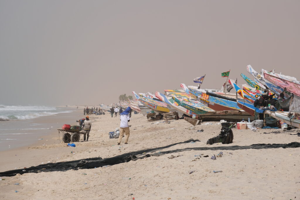 Nouakchott Mauritánia fővárosa, kicsit több, mint 1.2 millió ember lakja. 1960 előtt nem sokkal még csak egy kis halászfalu volt, a gyarmati idők alatt választották fővárosnak. A legtöbb utazó nem szereti Nouakchot-ot, egyrészről mert nagyon szemetes (Mauritánia volt sajnos egész afrikai utunk alatt a egszemetesebb ország), másrészről pedig nincsenek nagy látnivalói, és nincsenek modern éttermek kávézók és kocsmák. Alkoholt is nehezen és drágán lehet kapni, mi például nem ittunk egész Mauritániában. Ezek ellenére is szerettük, a legtöbb afrikai városban nagyok a kontrasztok a modern és a többi rész között, itt minden nagyon tradicionális volt. Az emberek közvetlenek és nyitottak voltak, a szenegáliak fűszeres kávét és baguettes szendvicseket árulnak, és kis kifőzdék isvannak mindenhol, ahol tudtunk sült halat és kecskenyársakat enni. Látnivalók szintjén mi a Port de Pêche-nél, azaz a halászkikötőben voltunk, ahová eljutni önmagában egy élmény volt, hiszen az iránytaxikkal próbáltuk kitalálni, hogy merre menjünk. Miután valaki megértette, hogy halat szeretnék a belvárosi halpiacra irányitott minket, ahonnan valahogy megértettük magunkat és egy másik iránytaxival eljutottunk a kikötőig (az iránytaxik régi mercédeszek voltak, elől a sofőr mellett 2, hátul pedig 4 ember fér be, két pont között közlekednek, tehát nem mi mondjuk meg, hogy hová szeretnénk menni). A kikötőben nagyon érdekes volt nézni a rengeteg színes halászhajót, amiket éppen próbáltak kihúzni (délután 2-5 között jó menni, hogy ezt lássuk). A kikötő után meglátogattuk az ingyenes múzeumot, azon kívül pedig csak séltállgattunk a homokos utcákon és piacokon. Még a város széli tevepiac az érdekesség a városban, mi emelett csak elmentünk.