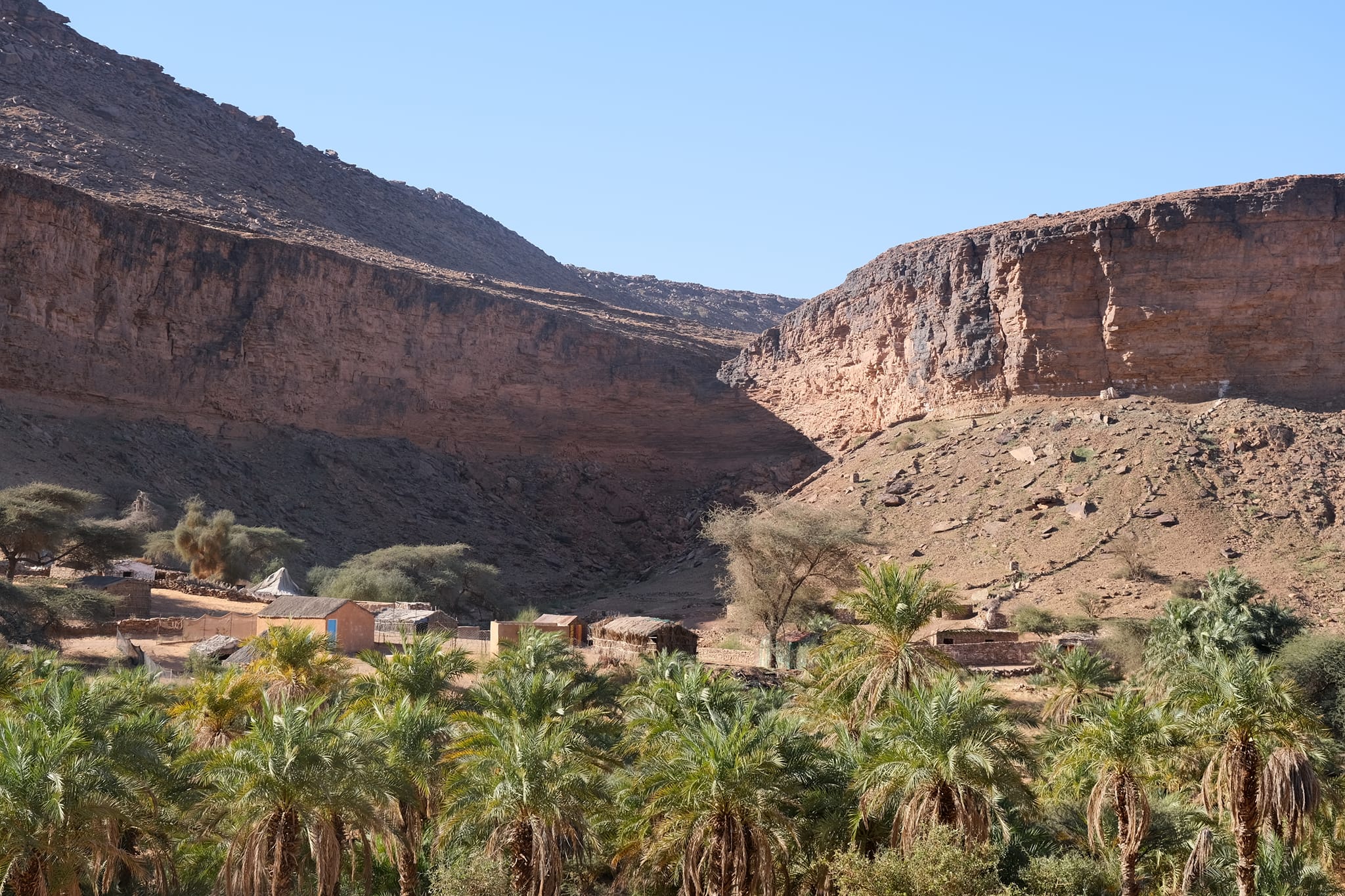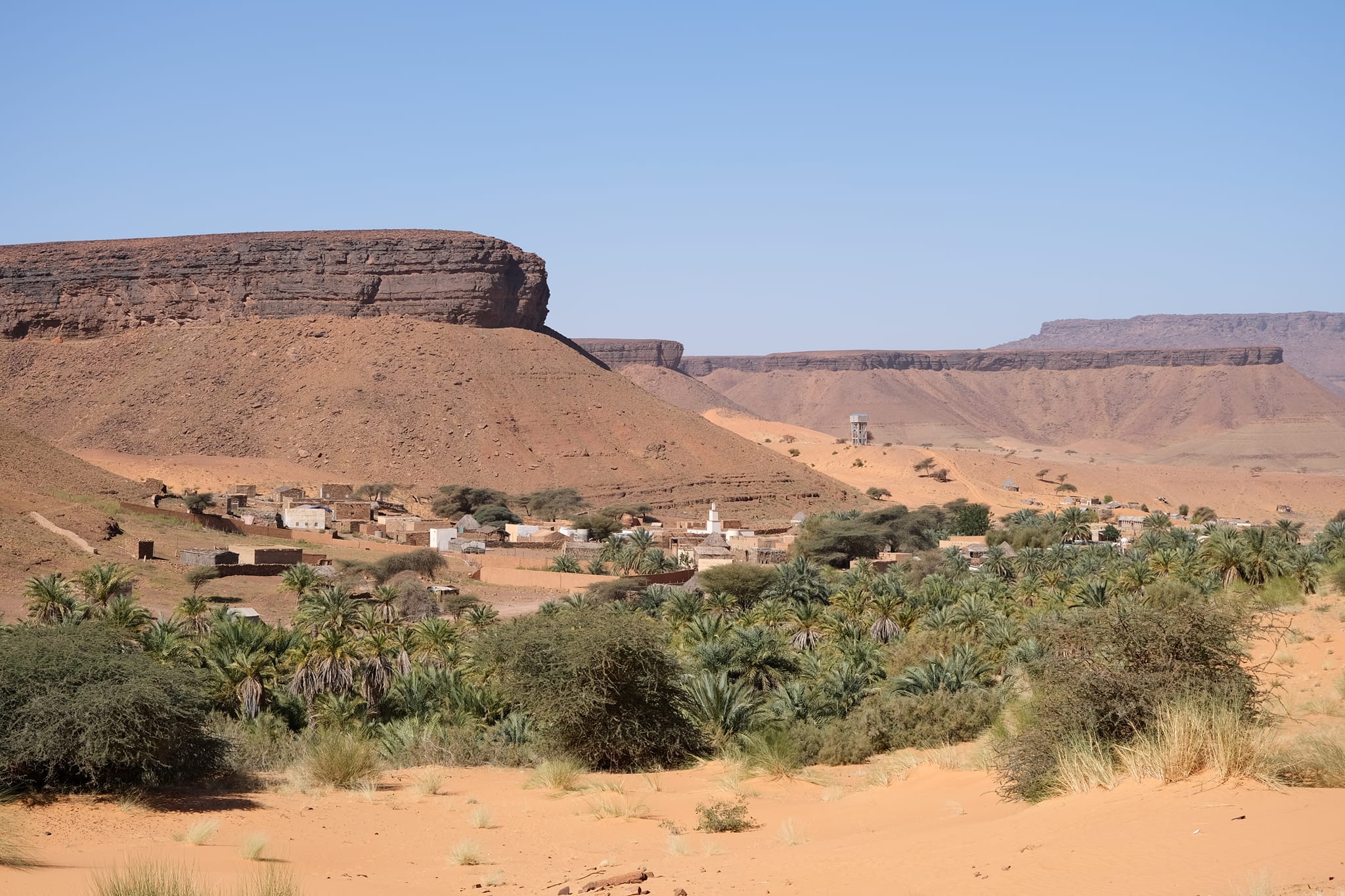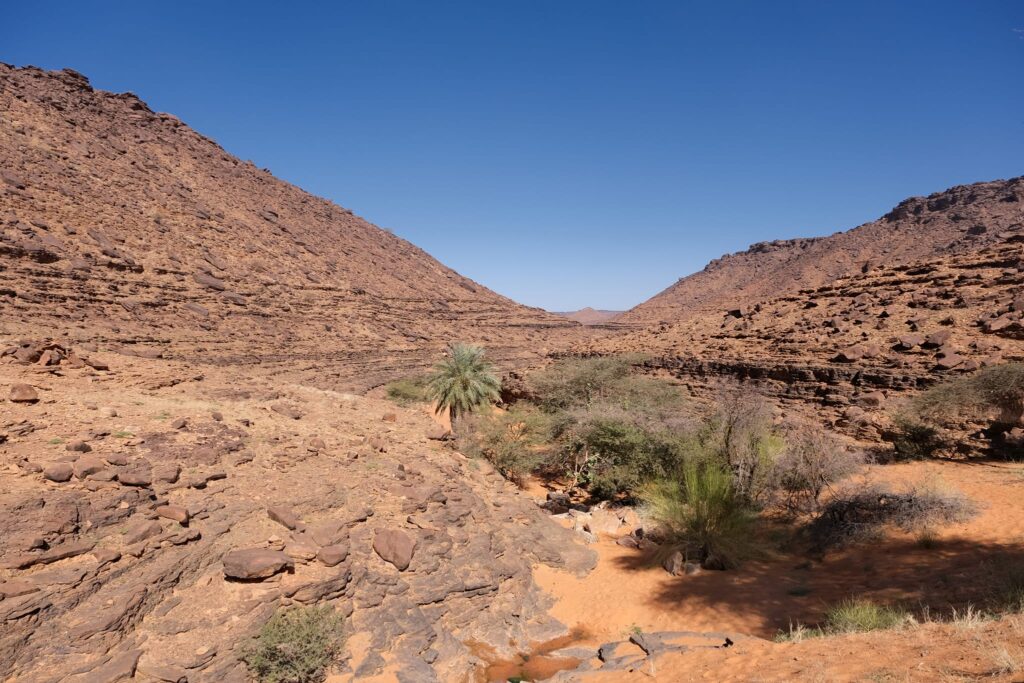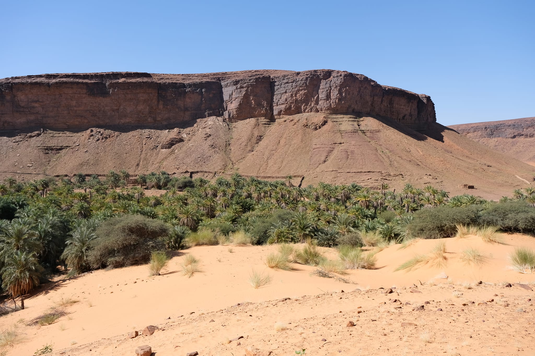 A fővárosból Terjit oázisába vettük az irányt. Pár száz kilométeren keresztül inkább unalmas sivatagi síkságon haladtunk keresztül, amikor egyszer csak a távolban hegyeket pillantottunk meg. A hegyek előtt hatalmas dűnék terültek el, ahogy közeledtünk az oázishoz. Az oázis bejárata egy hatalmas sziklahasadék volt, amin keresztül beértünk a völgybe, ahol teljesen elállt a lélegzetünk. Sziklás hegyek, gyönyörű dűnék és végtelen pálmafák fogadtak minket.