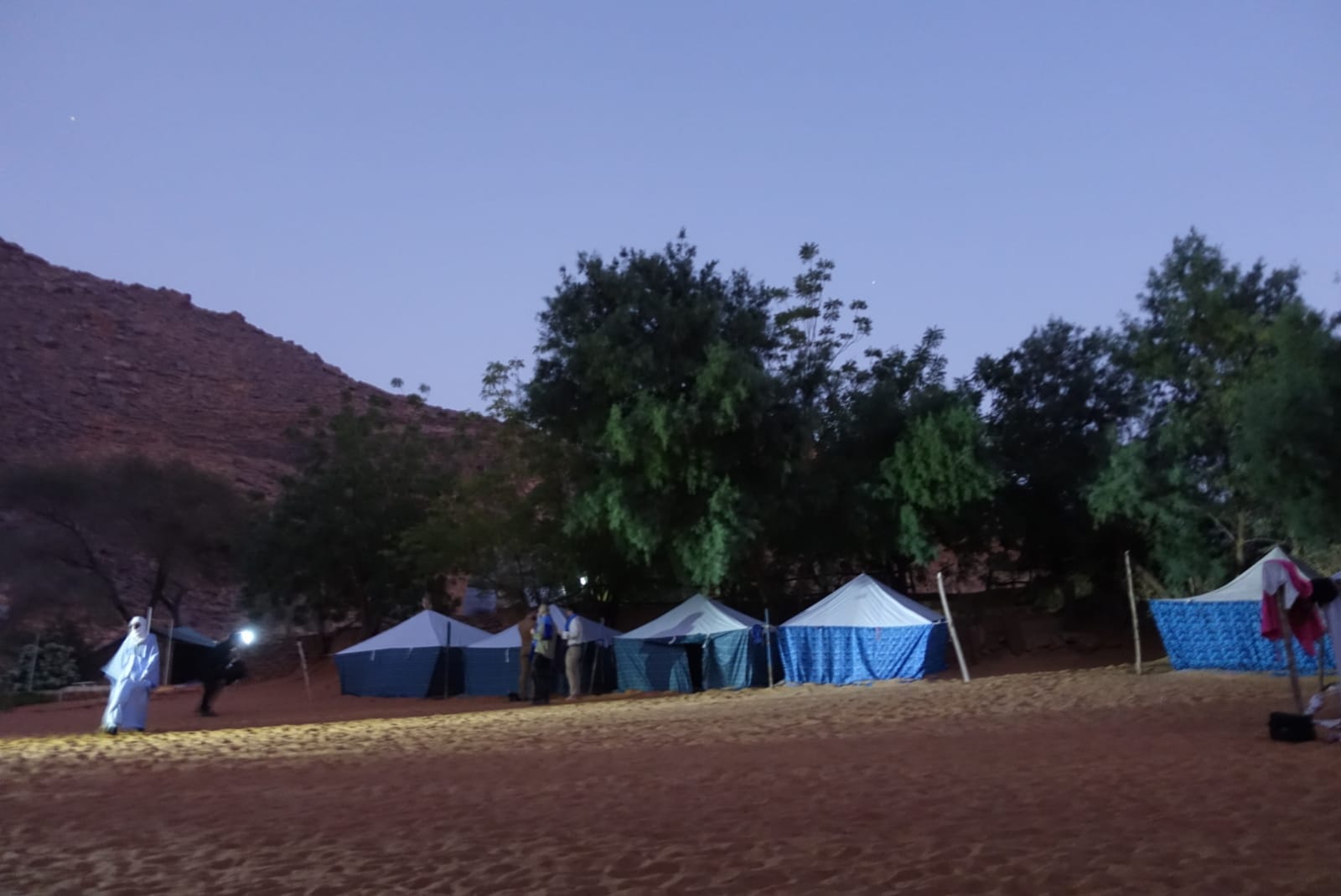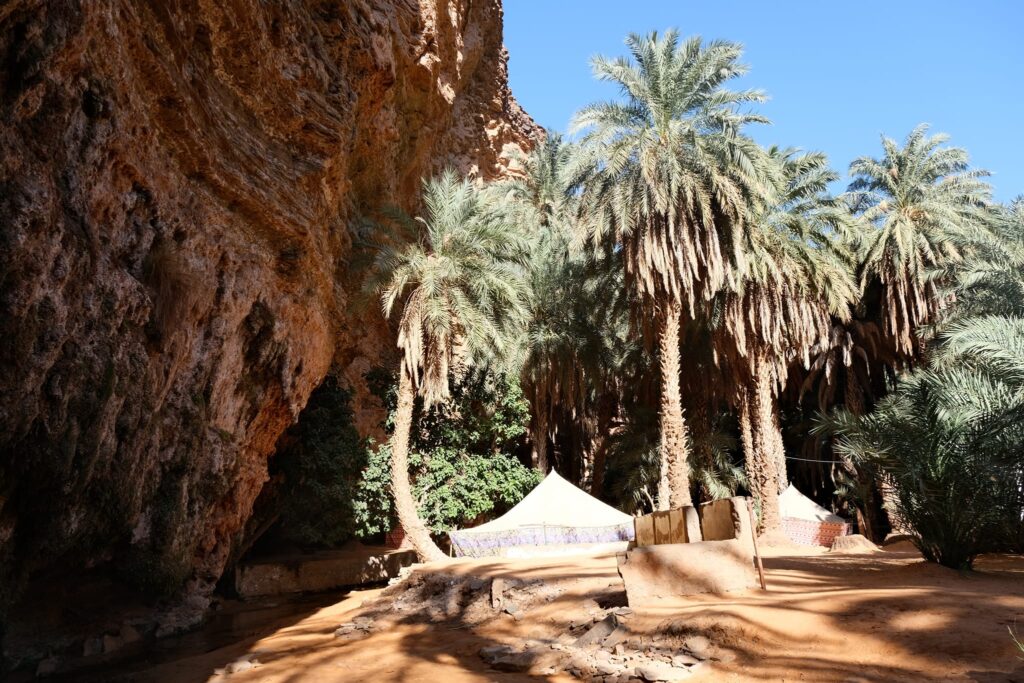 Mivel kezdett sötétedni, kerestünk egy sátortábort, ahol eltölthetjük az éjszakát, hogy másnap felfedezzük az oázist. A szállásunk valószínűleg az egyik legszebb környezetben volt, ahol valaha jártunk, este pedig finom fűszeres zöldségragut ettünk kuszkusszal.