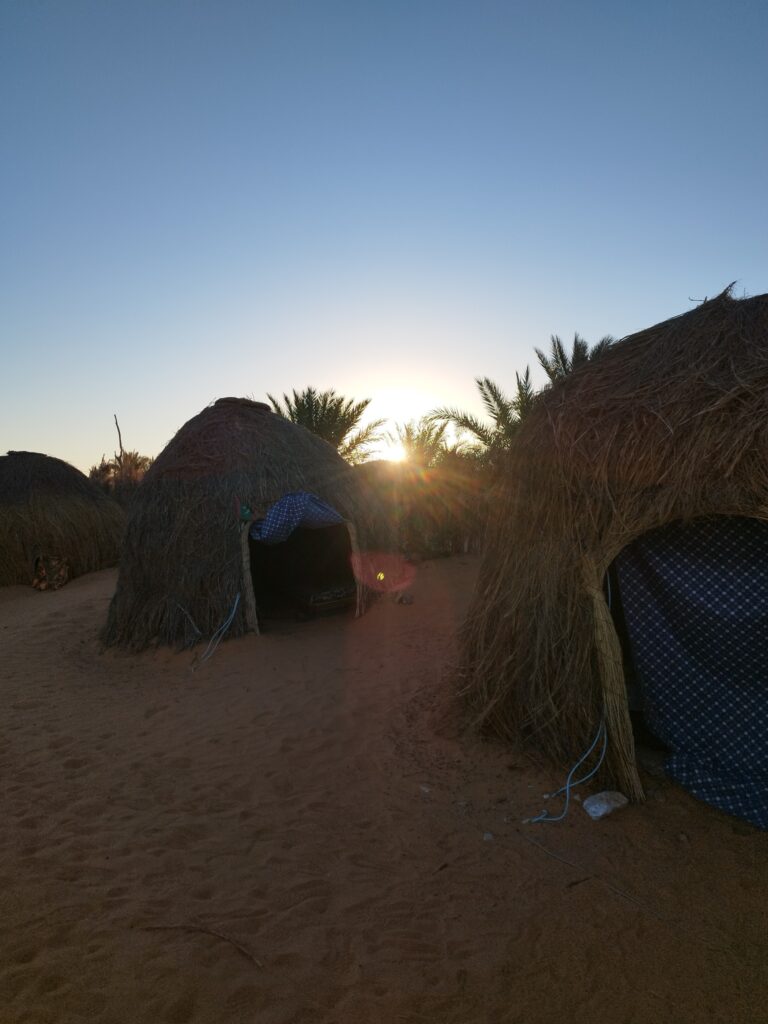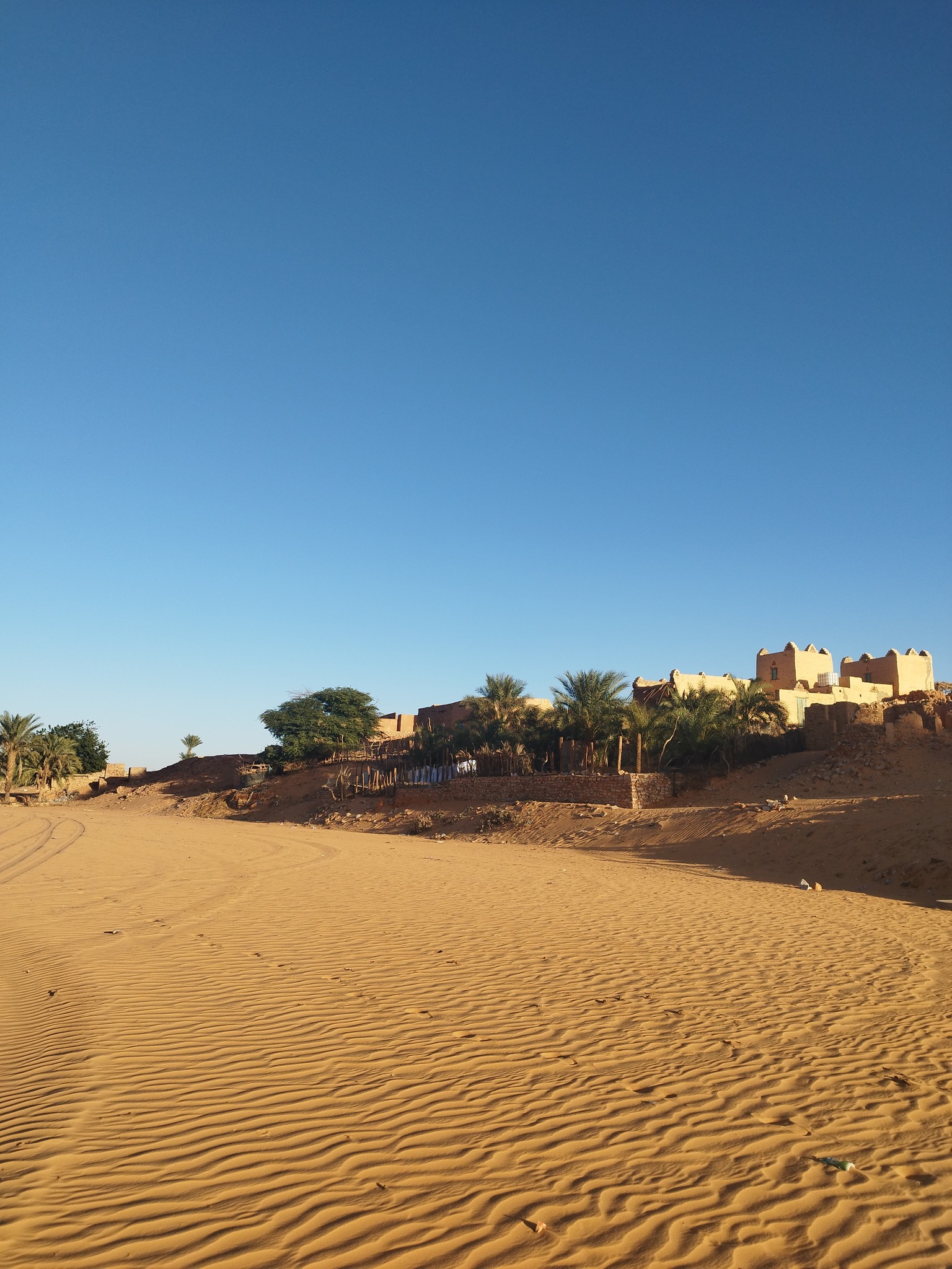 Chinguettiig az utat hegyes-völgyes kősivatag jellemezte, azonban a városka előtt 5 kilométerrel elkezdődtek a végeláthatatlan homokdűnék. Chinguettiben pálmafák és nagyon zöld kis gazdaságok fogadtak minket, mindenki valamilyen zöldséget termesztett az oázisban a sivatag közepén. Sikerült egy sátortábort találnunk a város szélén, a homokdűnék alatt, aminek a szépsége vetekedett az előző szállásunkéval.