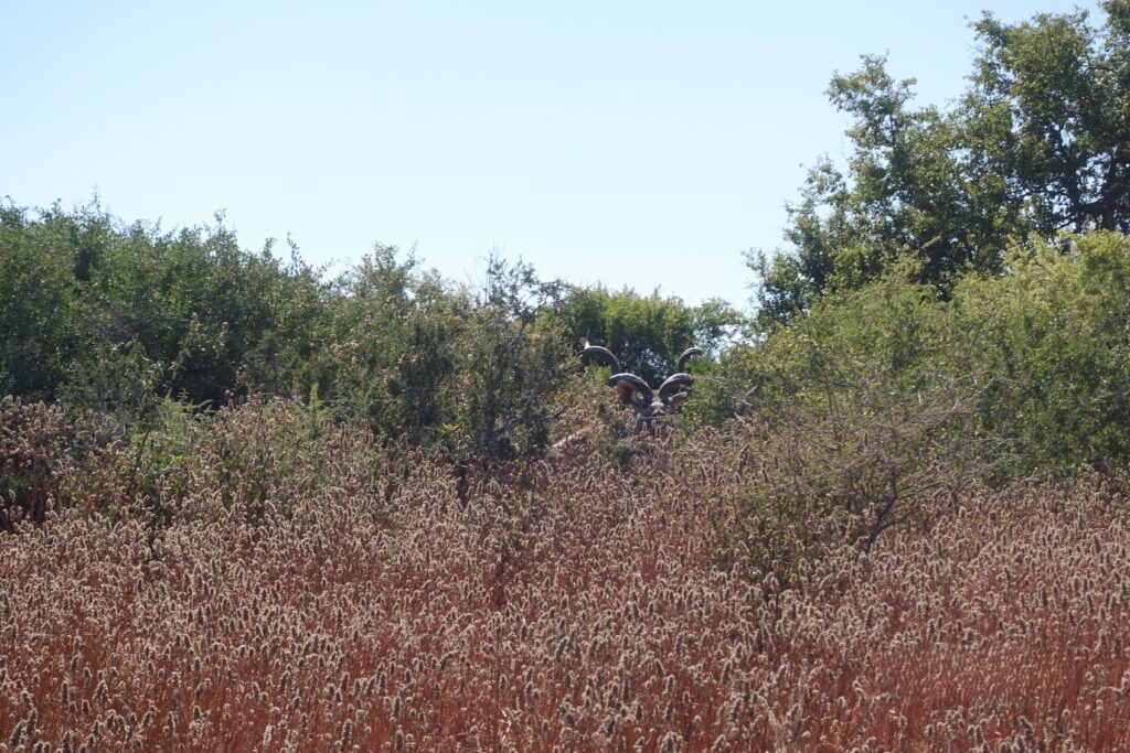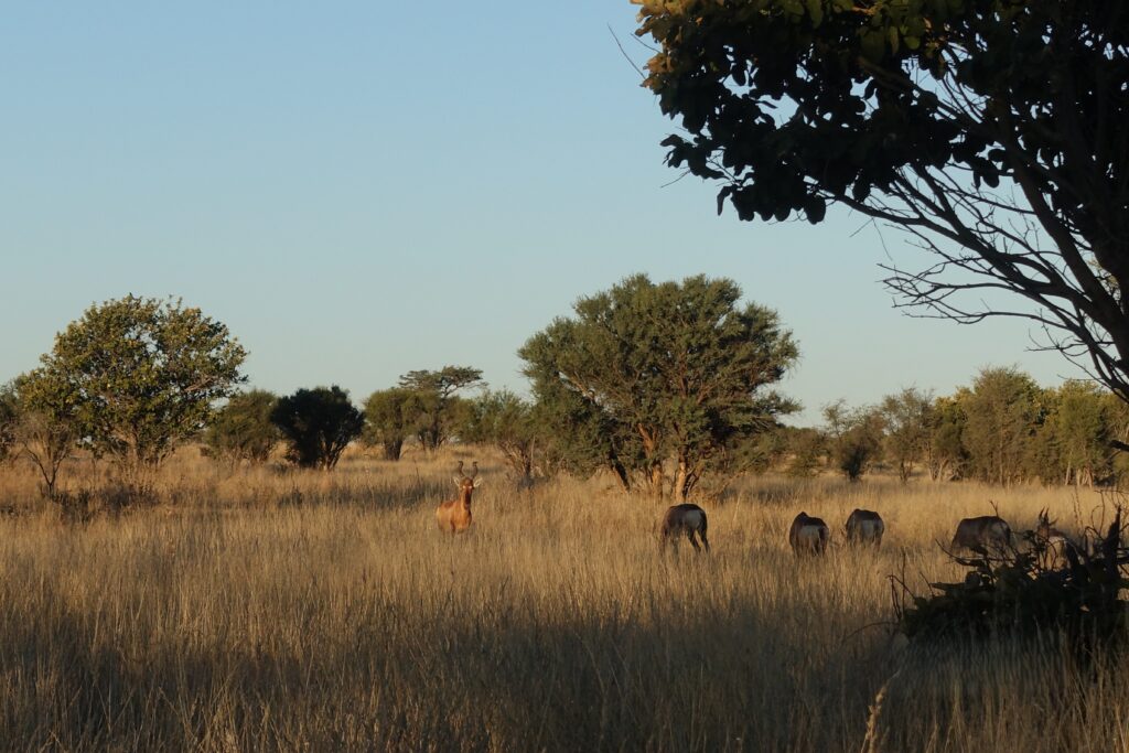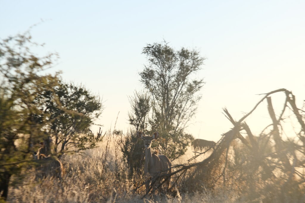 Beértünk a kapun, ahol megnéztük, hol kéne kempingeznünk – gyönyörű volt, de még WC sem volt, és éppen kb. 100 eland és kudu legelt békésen a helyen. Ez kicsit elbátortalanított minket, ezért megengedték, hogy a kapu mellett, a WC-knél kempingezzünk, ahol egy kocsinyi jófej svájci–ausztrál társaság is volt. Elmesélték, hogy az őrök szerint két oroszlán járkál errefelé, így nagyon örültünk, hogy nem a végtelen antilopcsapat között éjszakázunk, akik remek élelem az oroszlánoknak.