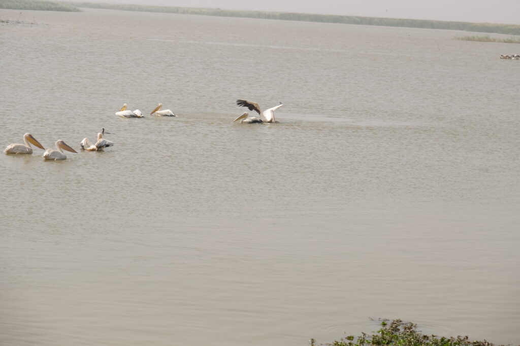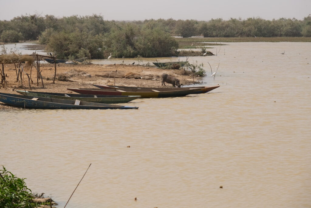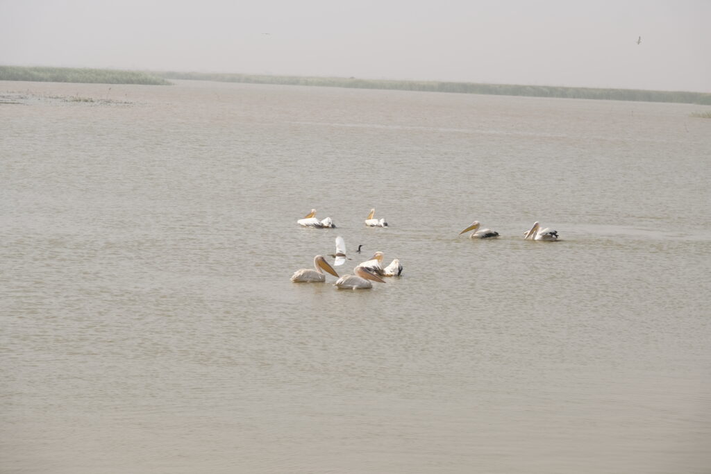 Nagyon élveztük az átkelést a Diawling Nemzeti Park területén. A park a Szenegál folyó mellett fekszik, számos kisebb tóval és rendkívül változatos madárvilággal. Rengeteg madarat láttunk: flamingókat, pelikánokat, szürke és fehér gémeket, valamint sok más fajt, amelyeket nem ismertünk. A madarakon kívül főként tevékkel, tehenekkel és rengeteg varacskos disznóval találkoztunk.