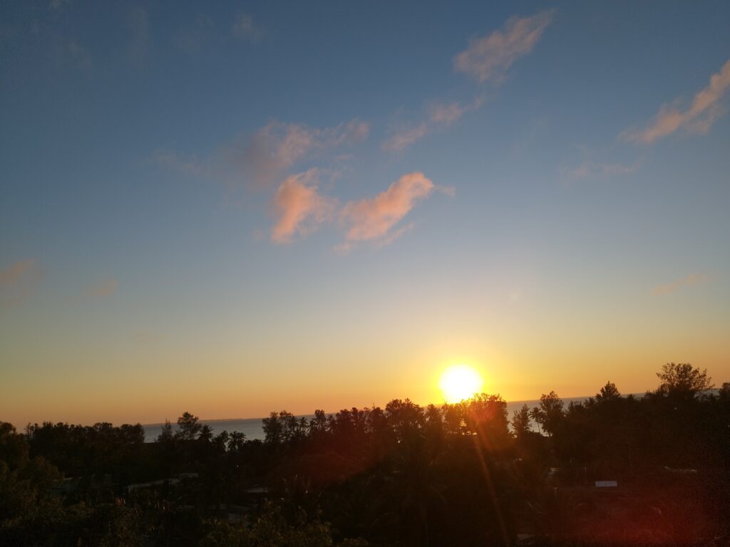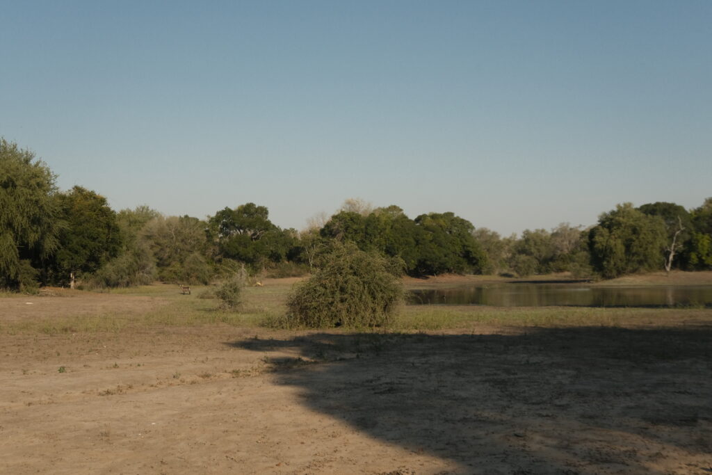 Az N1 tényleg elég rossz volt, kerülgettük a kátyúkat, így igazi felüdülés volt letérni a földútra. Kaptunk pontos instrukciókat, merre kell fordulnunk, és még sötétedés előtt megérkeztünk a bejárathoz, ahol kedvesen fogadtak. Mondták, hogy ráérünk másnap – vagy amikor csak akarunk – fizetni. (Mozambikban ezen sokat nevettünk: az előző országokban mindig mindent előre kellett fizetni, itt viszont szinte mindig azt mondják, hogy „majd később”, és nekünk kell keresgélnünk a tulajokat, hogy végre odaadhassuk a pénzt.)