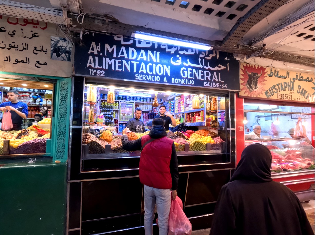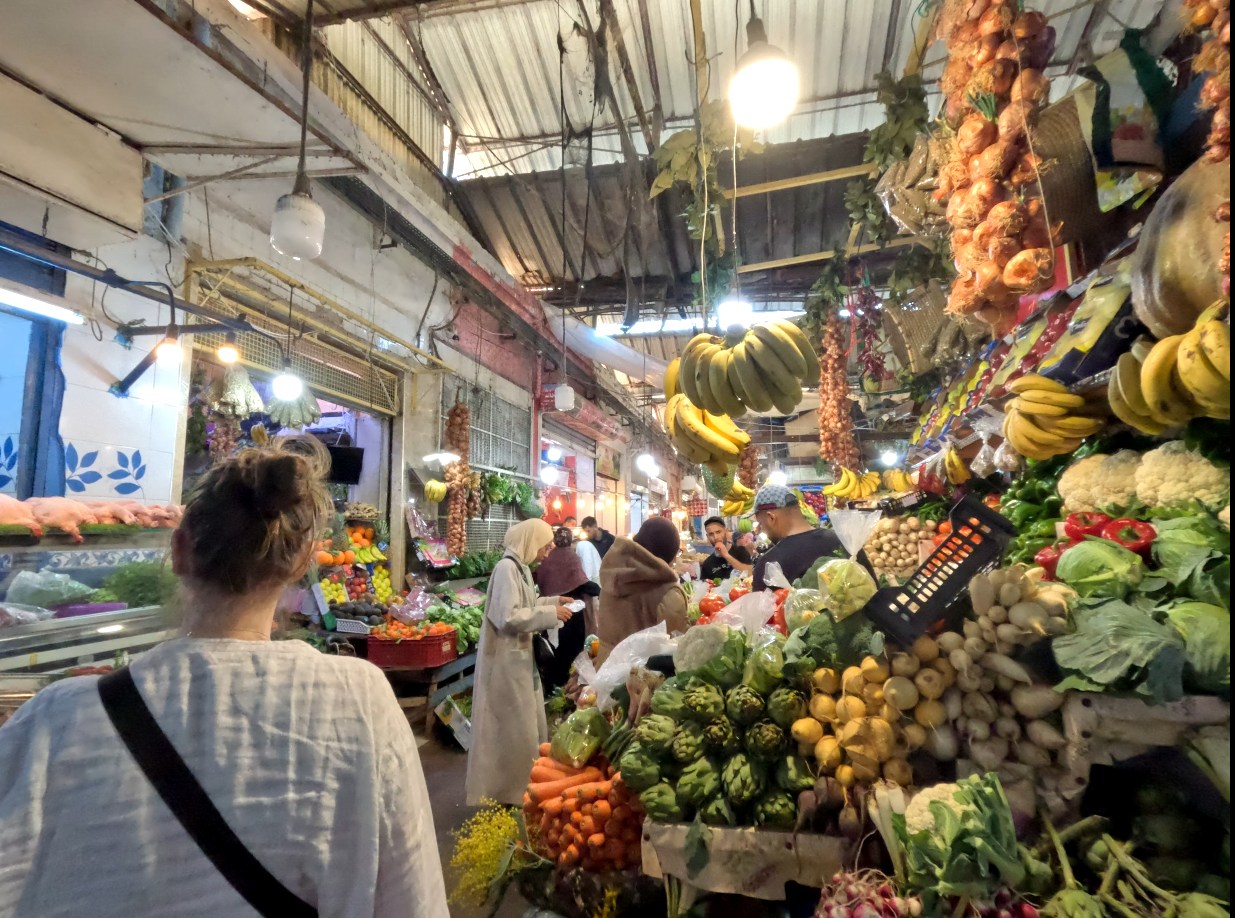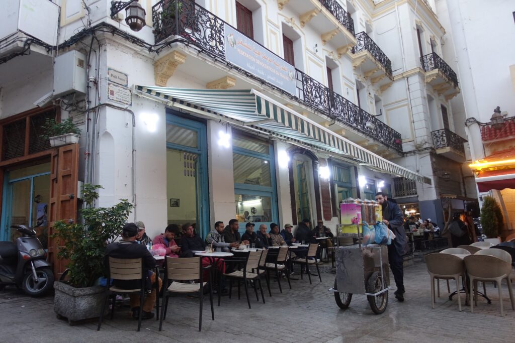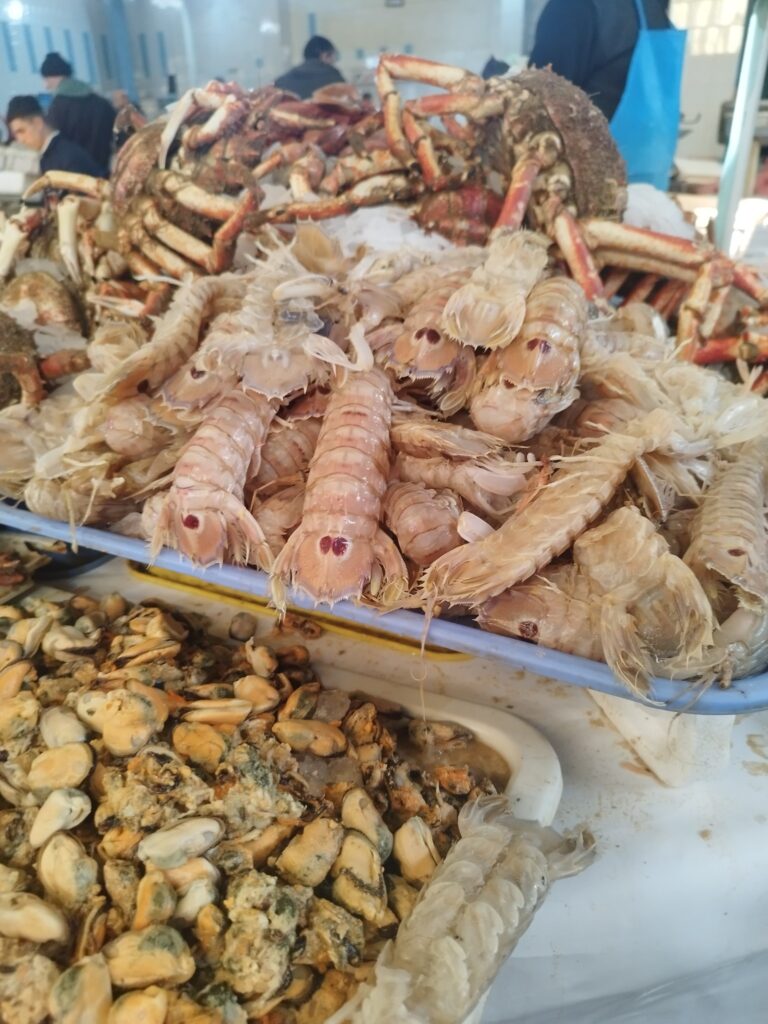 Ami nagy meglepetés volt számunkra, hogy mennyivel később kezdődik az élet. A reggel 8-as futáskor még alig jött fel a nap, és csak pár ember sétált az utcán. A kedvenc halpiacunkon is csak 11 körül kezdtek kipakolni, 1-kor élte a csúcsforgalmát. Mindenki inkább délután/este kezd kijönni, akkor telnek fel a kávézók, ahol mindenki menta teát vagy kávét szürcsöl. Az ételek finomak, de a mi ízlésünknek kicsit kevésbé fűszeresek (bár sok helyen van kitéve plusz chili szósz). Tangierben csirkés tajine-t (cserépedényben zöldségekkel készült) és egy tál babot velős csonttal (ez nagyon finom volt) ettünk ebédre, vacsira pedig leültünk egy utcai helyre, ahol faszenen grillezett csirkét ettünk olivával. Ádám egy népszerű helyi nutellás palacsintát is talált.