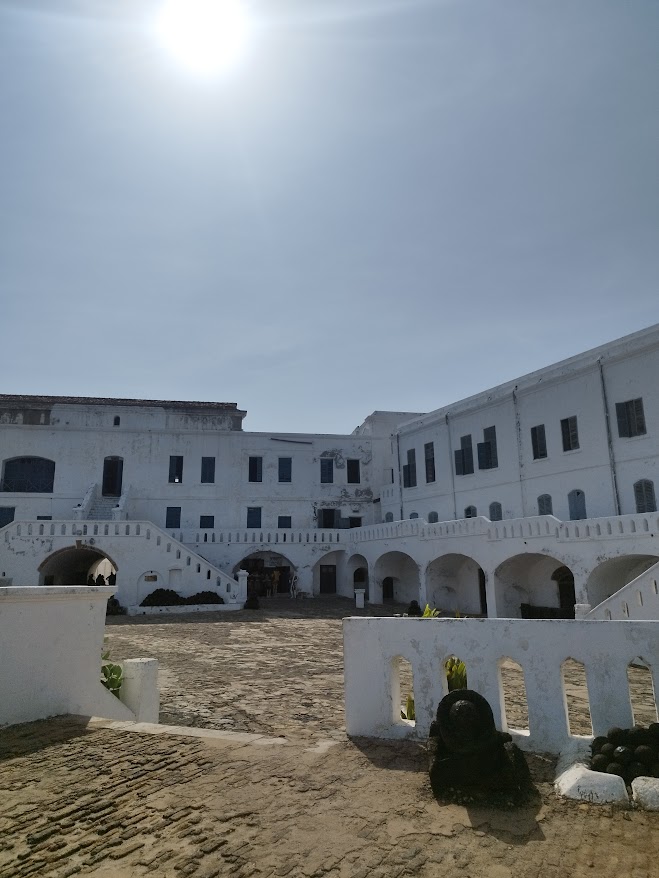 Befizettünk egy vezetett túrára, ami rendkívül meghatározó élménynek bizonyult. A vezetőnk azzal kezdte, hogy üdvözöl minket Cape Coast Várbörtönében, ahol az emberiség egyik legszörnyűbb bűntettéhez, a rabszolgasághoz járultak hozzá.