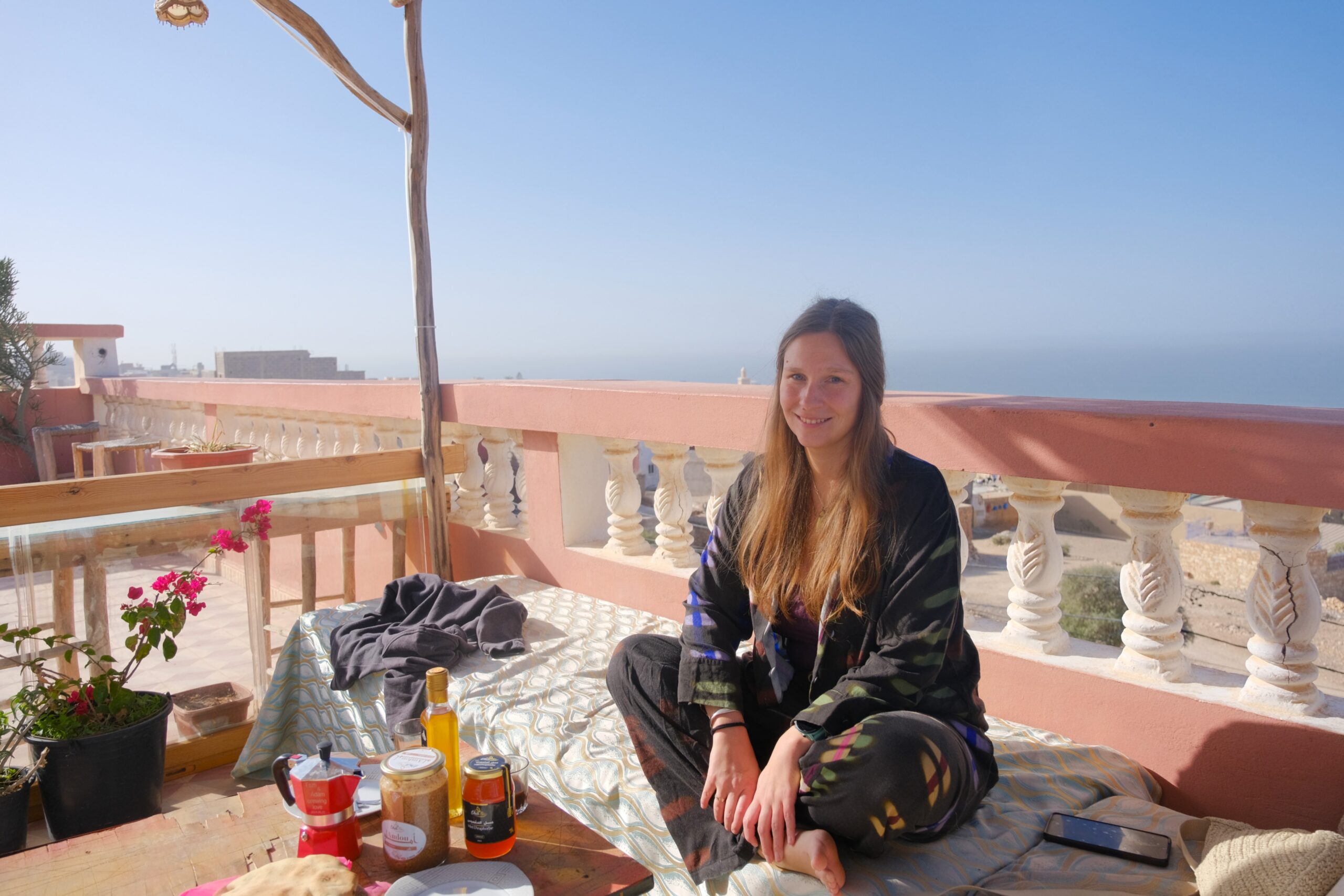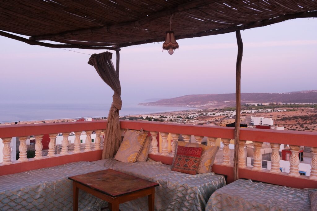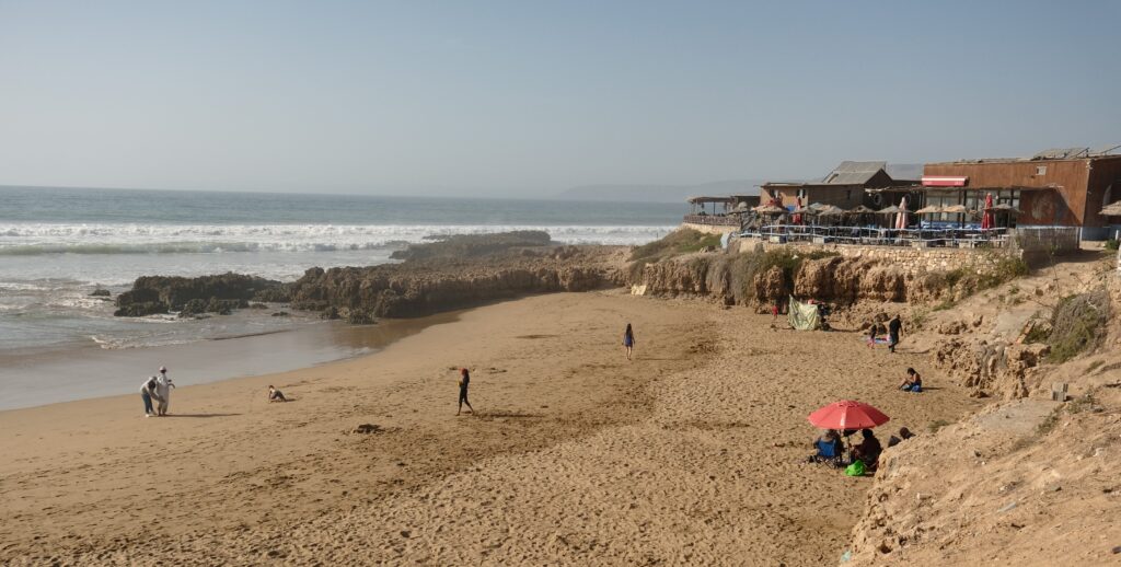 Tamraght egy népszerű szörfös hely 🏄, de mivel nagyon nagyok voltak a hullámok, a szörfözést kihagytuk. Helyette sétálgattunk a tengerparton, főztünk, pihentünk, és természetesen ittunk rengeteg mentateát.