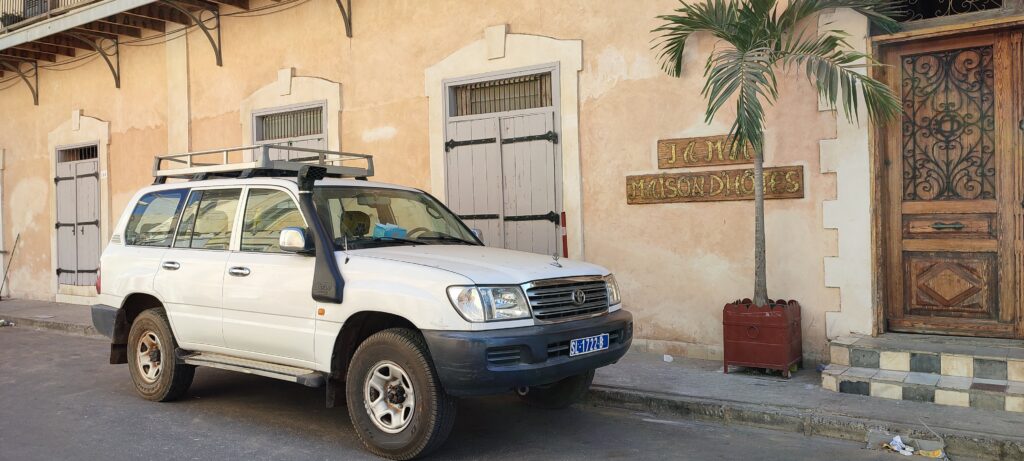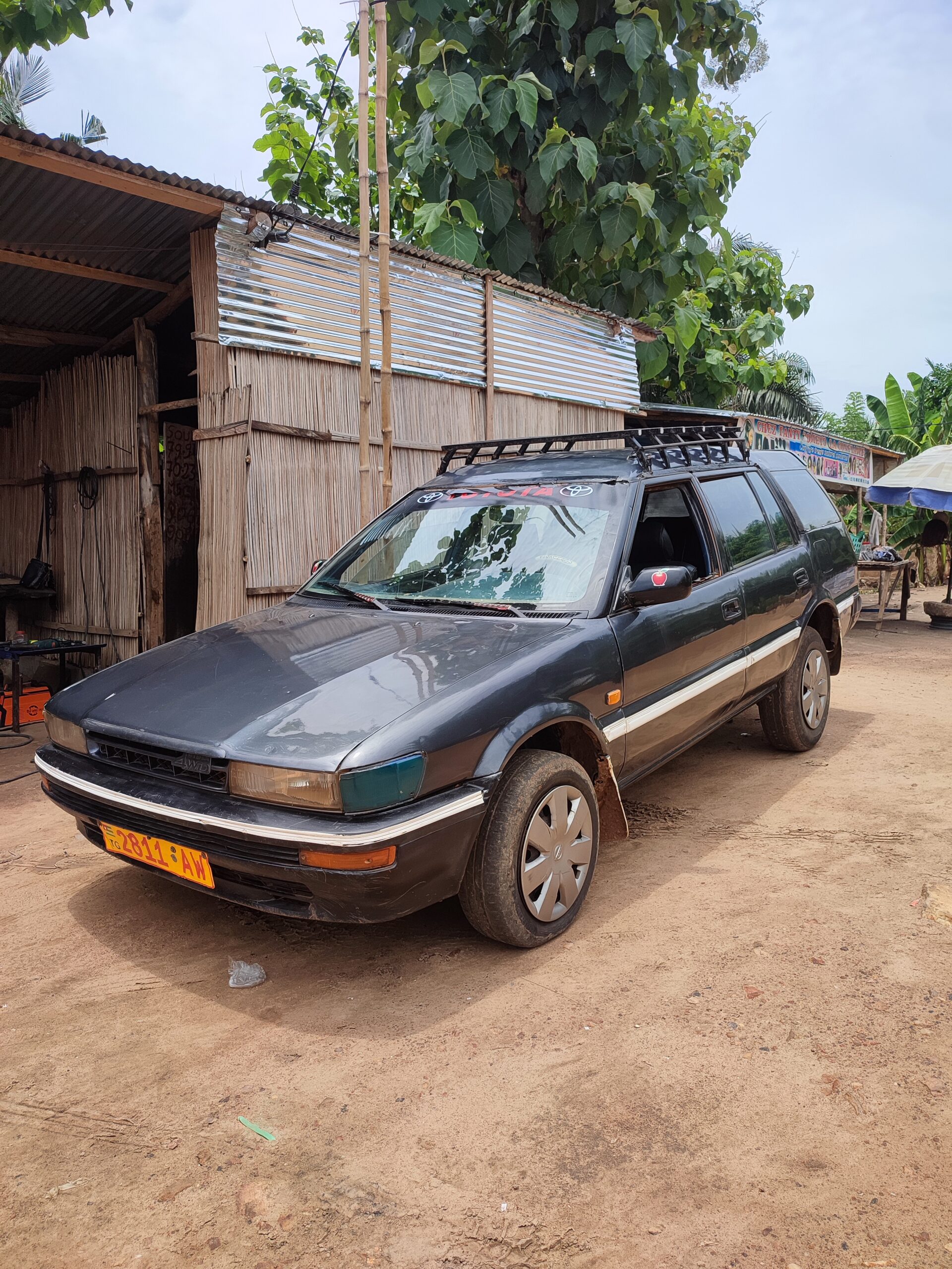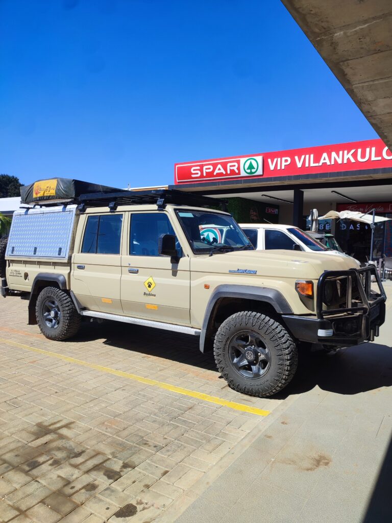 Az indulás előtt pár hónappal volt szerencsém eljutni az Öhler család garázsába. Iszonyatosan jófej emberek, rengeteg hasznos tanácsot kaptam és a lábam is megremegett egy ponton az épület előtt parkoló Corollától. Egyszerű, olcsó, nem szeret elromlani, és egy-két más Toyota típusból származó alkatrésszel elég jó terepképességű kocsit lehetett volna belőle építeni. A probléma a papírozás, illetve az volt, hogy ha nem 4×4-es az autó (pár piacon lehett kapni 4×4-et, de Magyarországon 2024-ben emlékeim szerint 1 db Toyota Tercelt hirdettek, amely meglehetősen nagy restaurálást igényelt volna), akkor a nemzeti parkokba csak a méregdrága safari kocsikon juthattunk volna be. Később megtudtuk, hogy nem kötelező a 4×4, ettől függetlenül nem ajánlom senkinek. A homokba/sárba ragadva valószínűleg hatalmas kaland egy elefánt vagy kafferbivaly csorda közelségét élvezni, ellenben ez nem a hosszú élet titka.