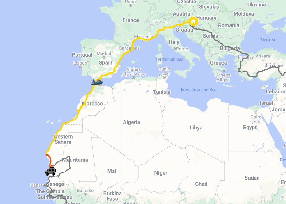January 30-31: The border crossing from Morocco to Mauritania was truly exhausting. We arrived at the border around noon, and there were about 15 cars ahead of us, so at first, we thought we would get through easily. By 2 p.m., only two cars had crossed the border when the border guards went on a one-hour lunch break. They reassured us, saying they believed we would still make it to Mauritania that day, as the border only closed at 7 p.m., but we were beginning to lose hope. After 5 hours of waiting in line, we finally passed the first gate, and from there, the endless bureaucracy began. In Morocco, they scanned our car, then inspected it with a dog, and sent us from one office to another with various papers. In Mauritania, we had to visit 10 different offices with our e-visa. Fortunately, we gained an extra hour in Mauritania, as it is in an earlier time zone. Overall, it was a very hectic border, but most people were kind and helpful, so after 8 p.m., we finally managed to complete everything, and we were finally in Mauritania.