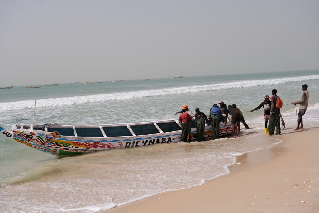 We had no idea which station to go to or which stop to get off at, and since our French is very basic, it took us almost three hours to reach the port. At first, we were taken to a fish market in the city center, where we walked around, talked to people, and finally found someone who spoke English. We were mesmerized by the bustling markets before finally reaching the fishing port. The sight was breathtaking: brightly painted pirogues and boats being pulled ashore by teams of ten to twenty men. The freshly caught fish were immediately sold to the market or small vendors.