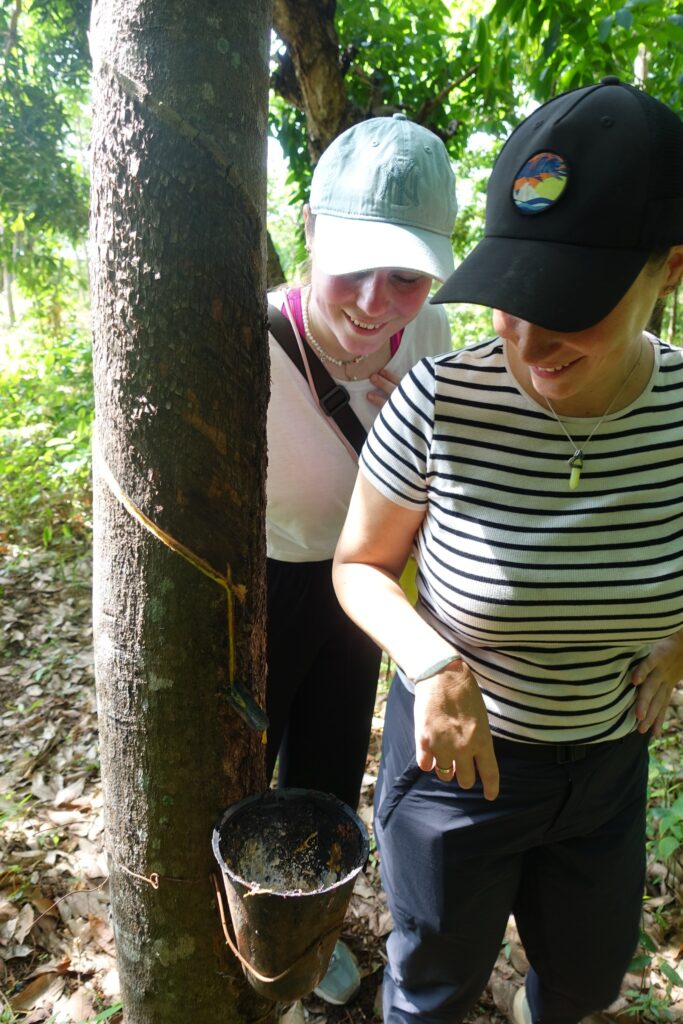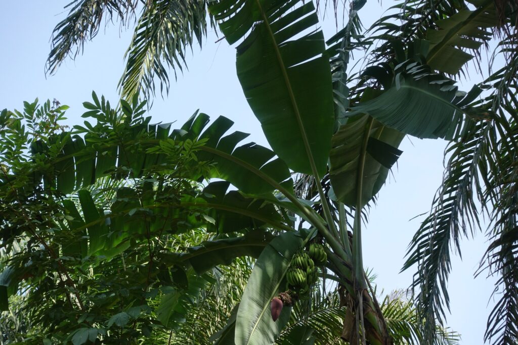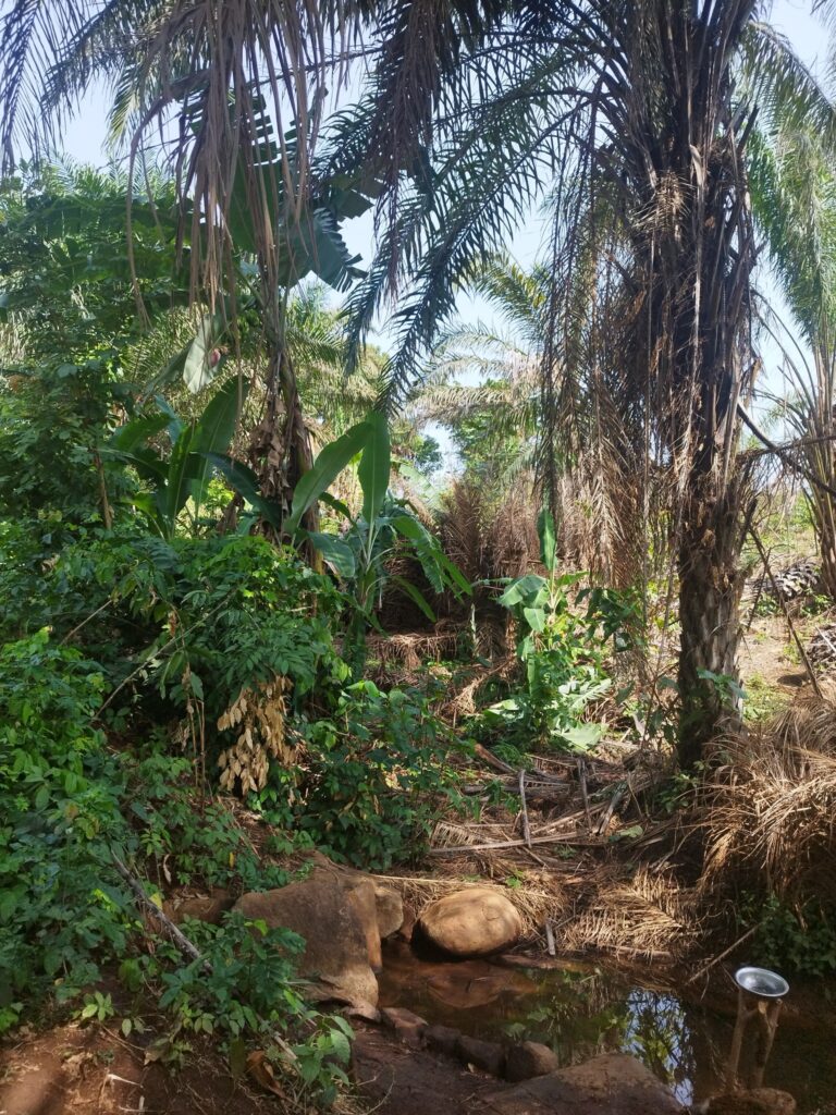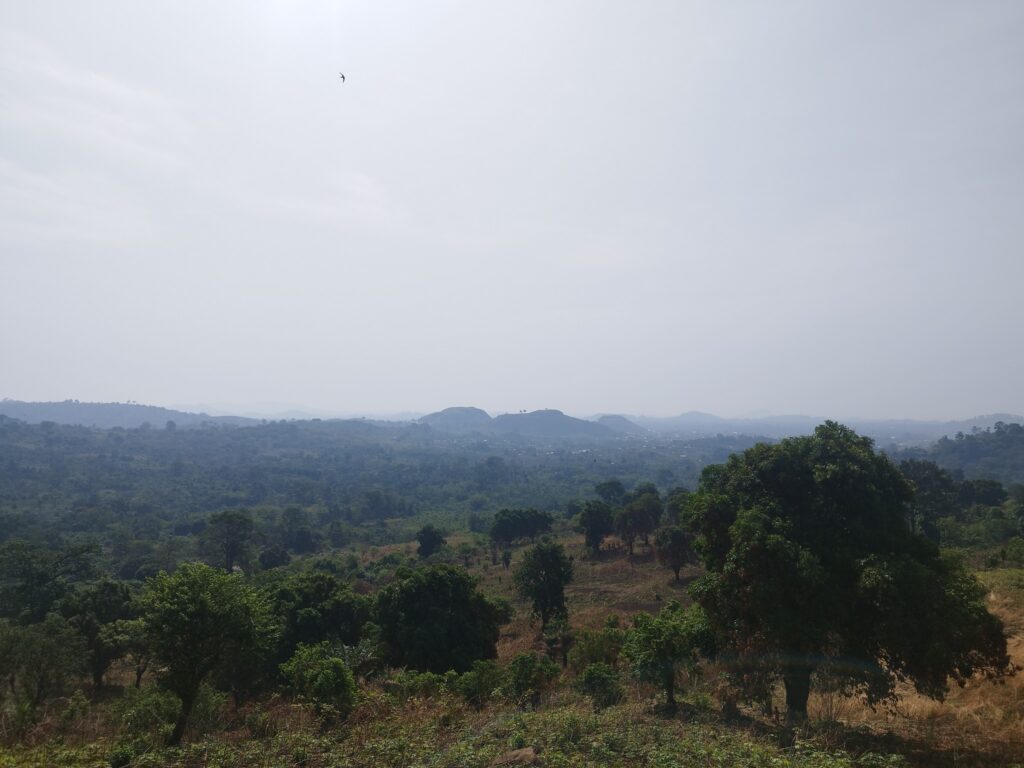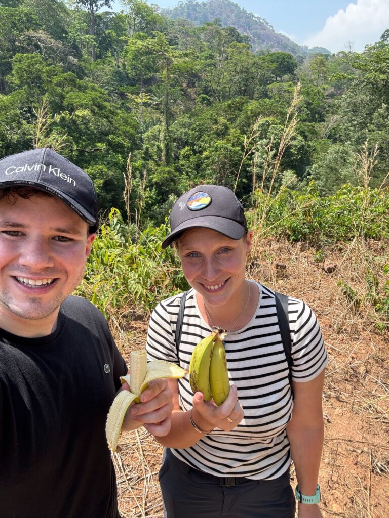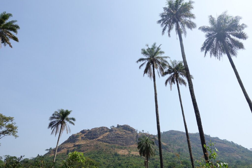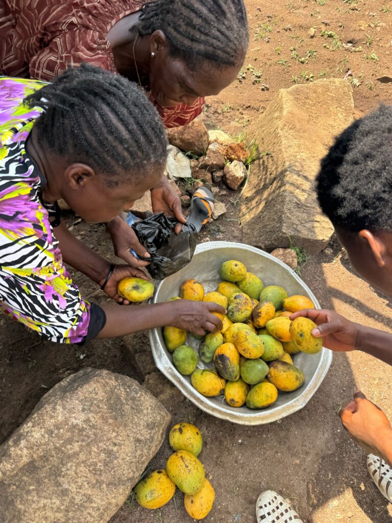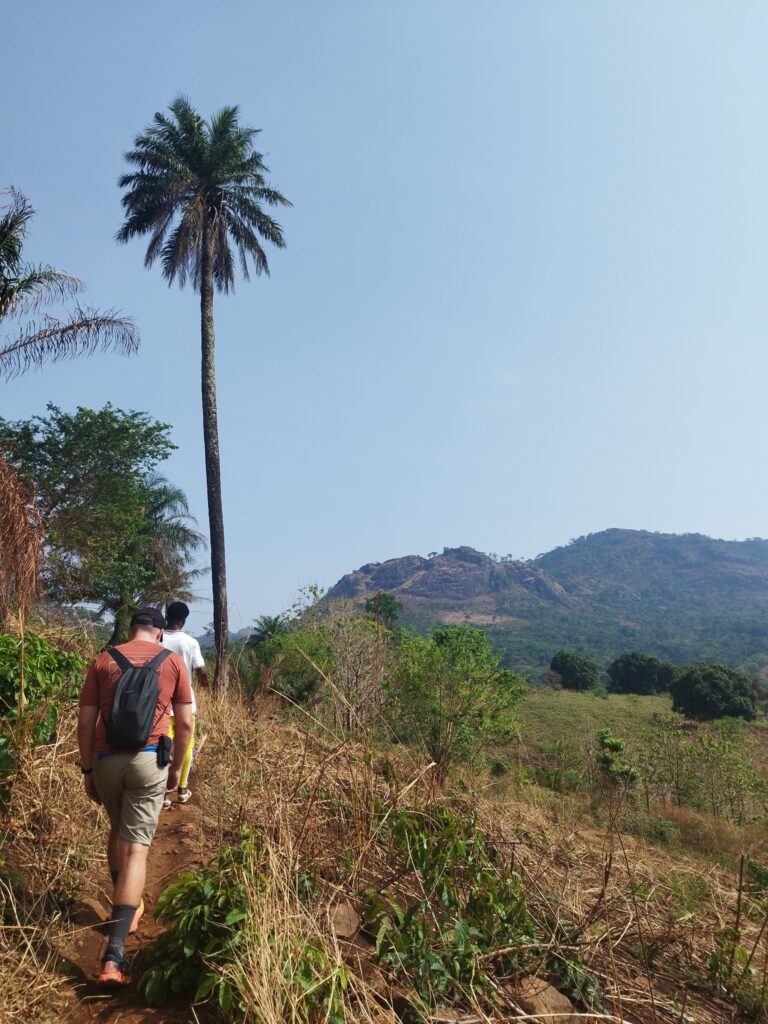 We first tried to quench our hunger with what felt like the world’s most delicious banana (or at least it did after the hike), sold by a woman along the trail. Back in the village, we found three women selling mangoes. We wanted to buy six – one for each of us – and based on our experiences in pricier countries, we offered 1000 CFA (about 1.5 EUR). Here, it’s common that fruits or even meals aren’t sold per item, but rather by price. The sellers were calculating with our guides, and we thought they were picking out the nicest ones – then we realized that for that amount, they would’ve basically had to give us their entire stock, as it would’ve bought around 30 mangoes. In the end, we agreed to pay only 500 CFA, and still received 15 mangoes – even though we tried to give some back. This kind of honesty is very typical in West Africa, especially among street vendors: once, when we overpaid by just 10 cents for a papaya from a car, they ran after us to return the extra money.